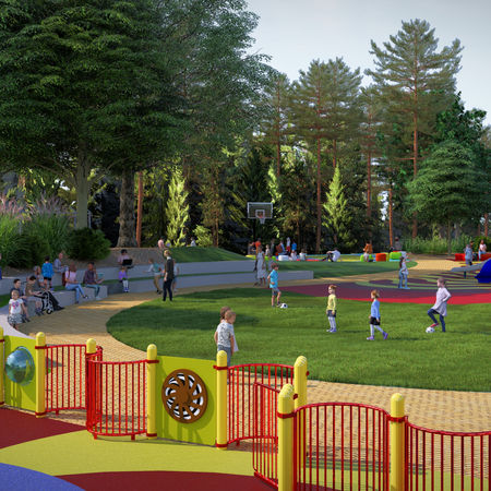 This 1.24-acre playground transforms accessibility into experience. Inspired by the school’s panther mascot, its paw-shaped layout creates inclusive play zones that blend color, movement, and connection—a vibrant space where learning and play empower every child.